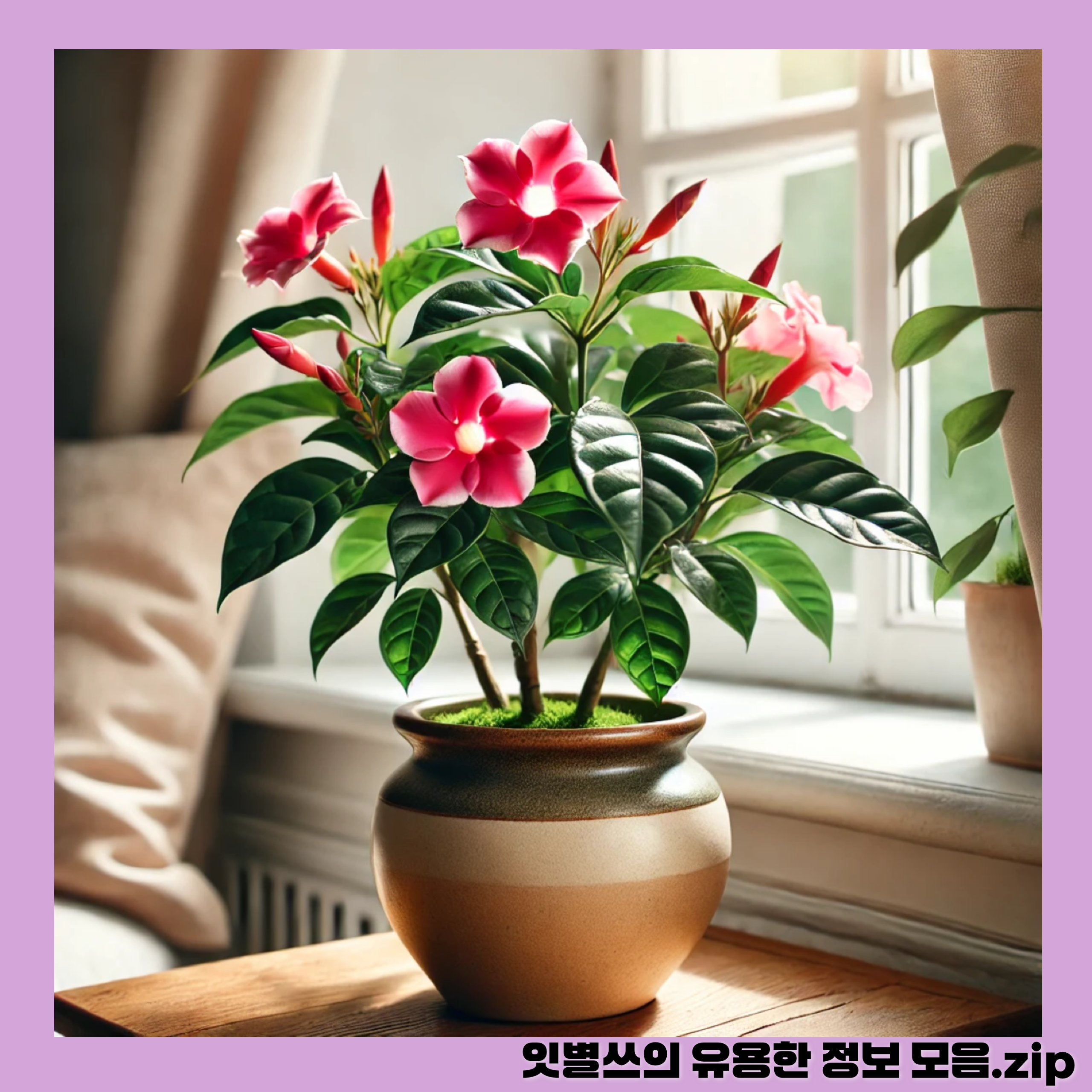 💡 팁: 만데빌라는 건조에는 강하지만 과습에는 약하므로 화분받침에 물이 고이지 않도록 주의하세요!